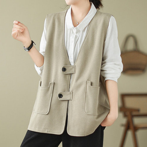 TKX 여성용 귀여운 캐릭터 니트 조끼 봄 가을 브이넥 버튼 포켓 장식 고급 디자인 캐주얼 일상룩 K35
