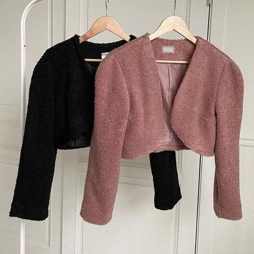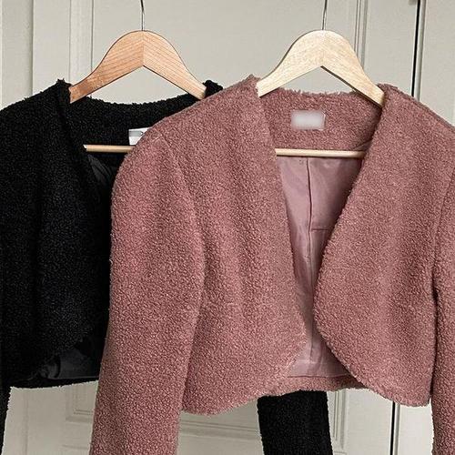 [셀러허브_여성트랜드패션]빅사이즈아우터 Q227L510 부클오픈볼레로크롭자켓 MO