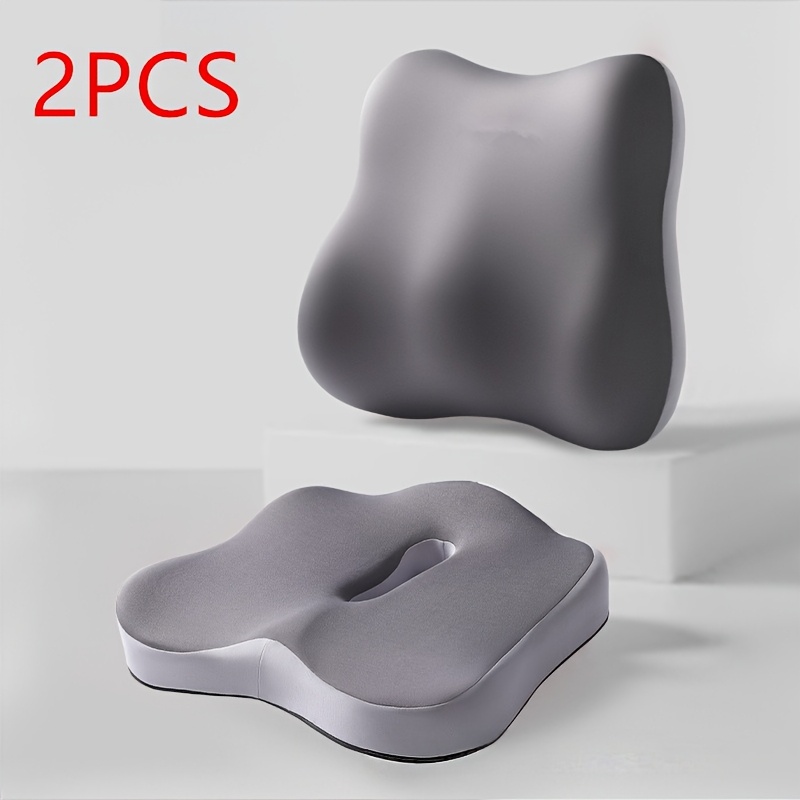 TEMU 2개 세트 인체공학 사무용 의자 메모리폼 쿠션 & 요추 베개 - 천천히 복원되는 꼬리뼈 지지, 좌골신경통 완화 - 사무용 의자, 차량, 휠체어에 완벽