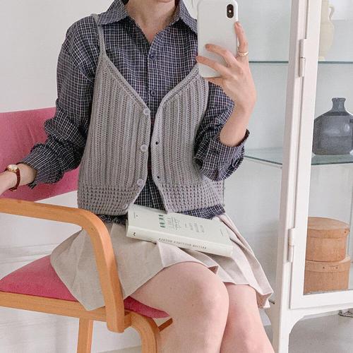 바바 여성 브이넥 반버튼 루즈핏 니트 조끼