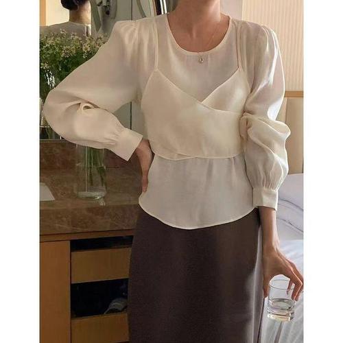 쫀쫀 쇼릴오 뷔스티에 셔츠 슬림 여성 쉬폰 원 WFKNXQK