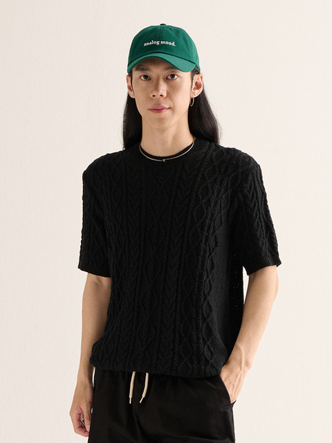 [아날로그무드] 부클 라운드 세미 반팔니트 (블랙)