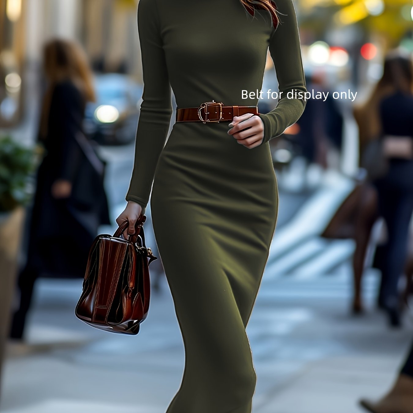 TEMU 우아한 여성용 하이넥 기모 안감 타이트 니하이 드레스, 벨트 없는 디자인, 트렌디한 패션, 긴팔 맥시 스커트, 캐주얼 또는 반공식 행사에 적합, 가을 의상 및 겨울 레이어링에 완벽, 포멀 행사복, 겨울 드레스