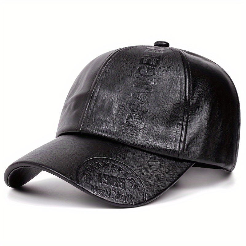 TEMU 남성용 가죽 베이스볼 캡, 1985 로스앤젤레스 뉴욕 스타일, 가을 겨울용 조절 가능한 빈티지 모자