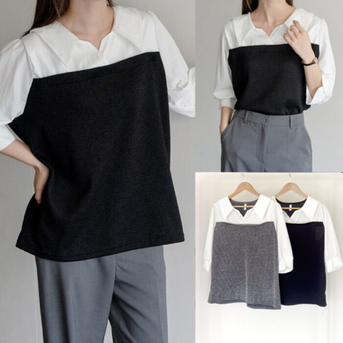 나야홍 / 위쉬몰 GO 오픈카라배색탑블라우스(V136H510) 빅사이