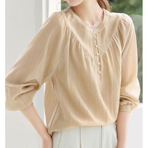 [패션시그널]버튼라운드넥 링클브이 블라우스 7B3CA1