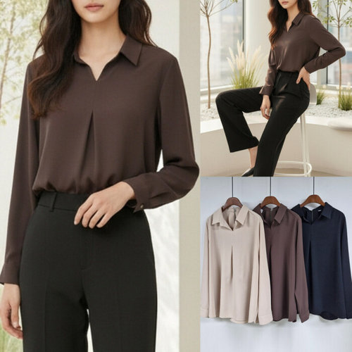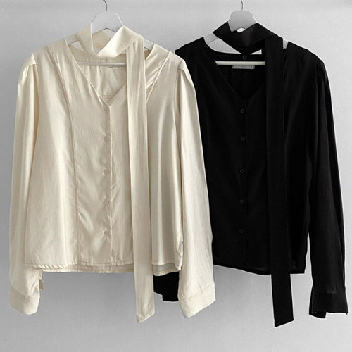 구김적은 링클프리 오픈타이 긴팔 블라우스 PN011