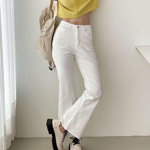 [신상오픈런]여자 슬림부츠컷 속밴딩 스판 흰색 블랙 데일리룩 바지