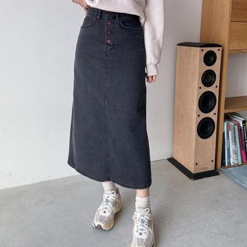 [미라클세븐][M7] 여자 진 하이웨스트 속밴딩 블랙진 일자 스커트
