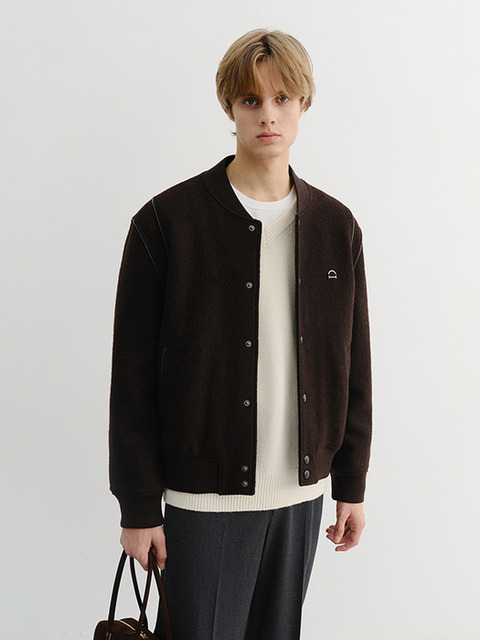 [던스트 포 맨] UNISEX BOUCLE WOOL VARSITY JACKET BROWN_M_UDJU5D124W2