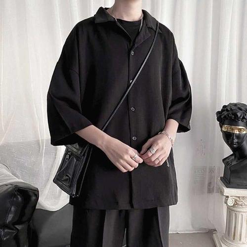 [에이치플러스몰]님지 대학생 간절기 코디 검정 블랙 카라 셔츠 무지