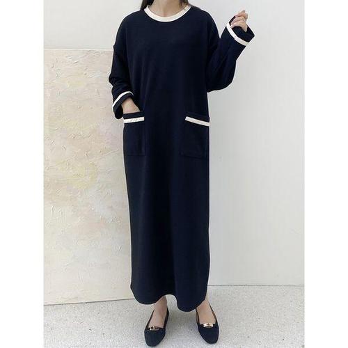 [샵앤]국산 여성 라운드 포켓배색 임부 롱원피스 LL-WDR-4848-블랙