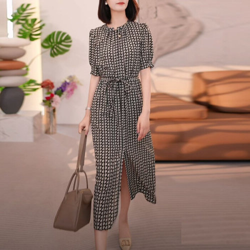 반팔원피스 여름 롱원피스 하객룩 블랙 화이트 퍼프 단아한 20대 CH193