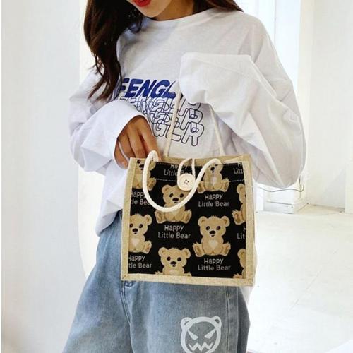 쇼핑백 휴대용 신상입고 귀여운 가방 시장 에코백 곰돌이 접이식 경량 보조 블랙 키링 R04 장바구니 트렌드