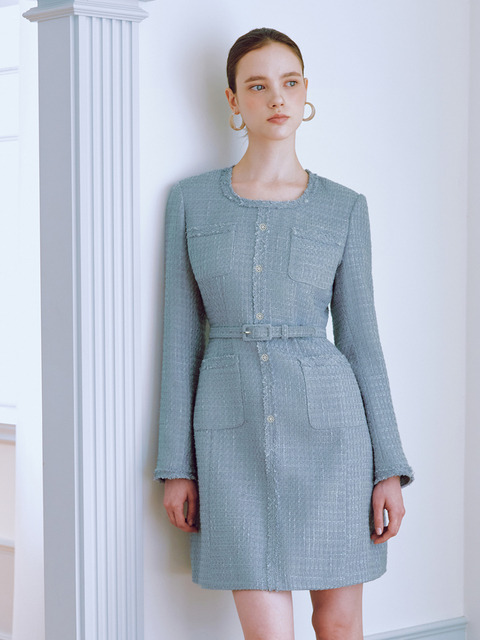 [쥴리앤칼라] 25FW 칼라129 GBTN벨라 트위드 원피스 스카이블루