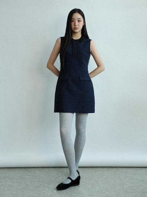 [방떼] 사틴 카라 트림 트위드 미니 드레스 인 미드나잇 블루