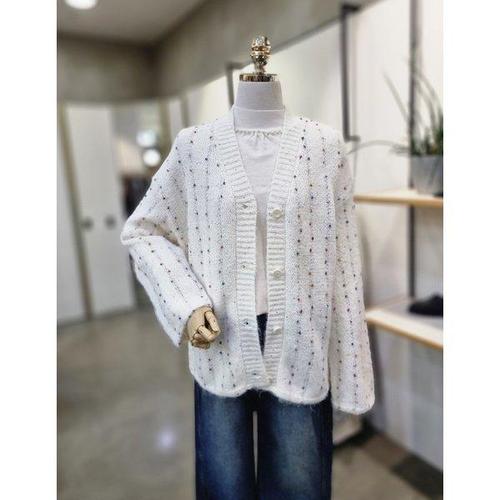 [신상오픈런]엔엇드 단추 가디건 컬러 오버핏 비즈펄 V넥 긴 여성