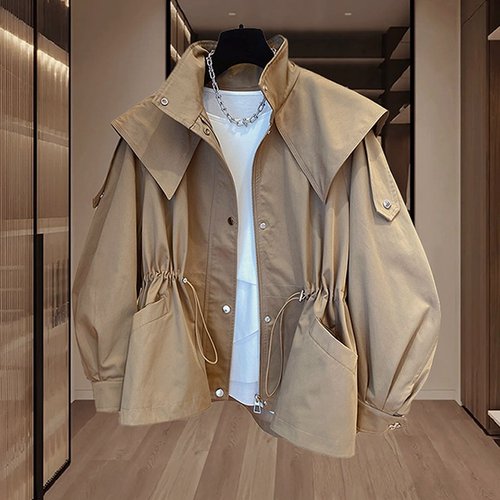 행복여 뮤즈 사각 포켓 스트링 후드 바람막이 야상 집업
