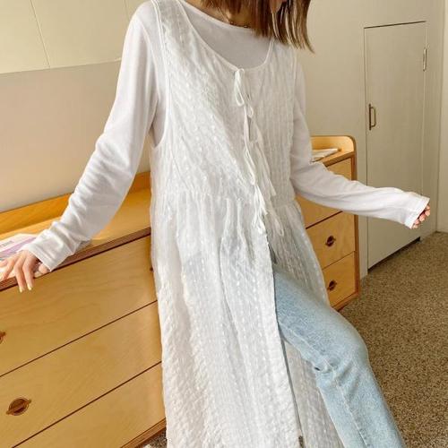 [미라클세븐][M7] 여자 SS 비침 리본 레이스 코디 롱원피스