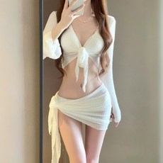 유가티 비치 커버업 시스루 비키니 4세트, 아이보리