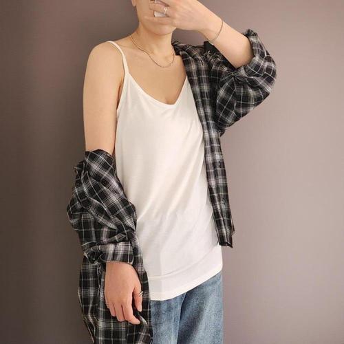 [옷자락] 여성 빅사이즈 이너탑 루즈핏 레이어드 브이넥 끈 나시