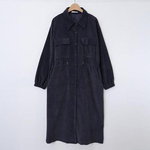 [옷자락]여자 겨울 속기모 반오픈 셔츠 골덴 빅사이즈 롱원피스