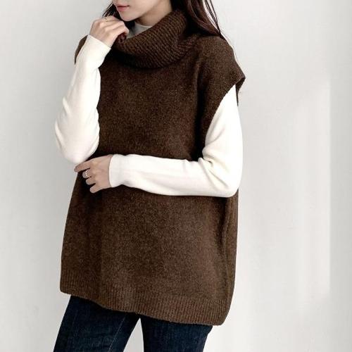 [다잇템][다잇템] 여자 빅사이즈 FW 민무늬 골지 폴라넥 힙커버 니트조끼_23822477_588872
