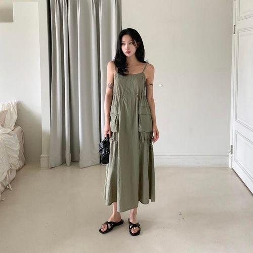 [다잇템]여성 캐쥬얼 빅사이즈 건빵 주머니 원피스