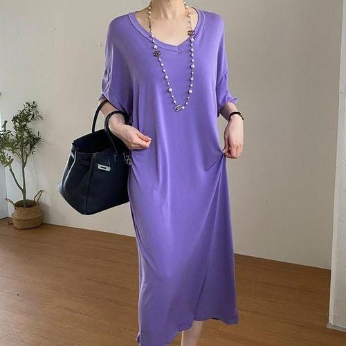(55~88)2종세트 빅사이즈 여름 라일락민소매원피스 캐주얼원피스 니트원피스 엄마옷 임산부봄원피스