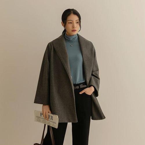 숄 벨티드 빅카라 울 자켓 숏 핸드메이드 코트 코디