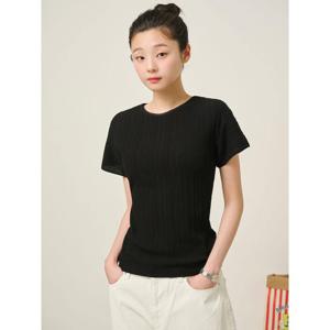 [빈폴레이디스] 코튼 혼방 주름 반소매 풀오버 블랙 (BF5451C065)