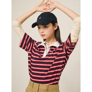 [빈폴레이디스] 옥스퍼드 패치 스트라이프 루즈핏 T칼라 티셔츠 네이비 (BF5442C05R)