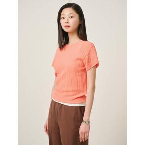 [빈폴레이디스] 코튼 혼방 주름 반소매 풀오버 코럴 (BF5451C067)
