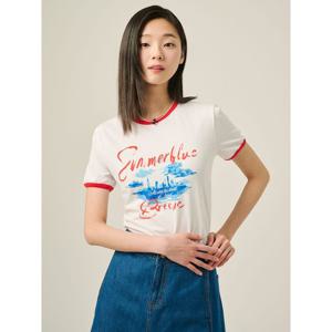 [빈폴레이디스] 그래픽 반소매 링거 티셔츠 화이트 (BF5442C061)