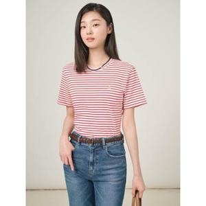 [빈폴레이디스] [Essential] 스트라이프 반소매 티셔츠 라이트 핑크 (BF5442E03Y)