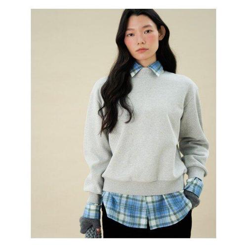 나인조이 빅사이즈 레이어드 후드티 그레이/오버핏/간절기/티셔츠/집업후드/가을신상/프린트/커플티/가족티