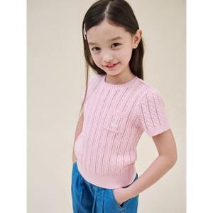 [빈폴키즈] [Essential] 여아 스카시 반소매 라운드 니트 스웨터 라이트 핑크 (BI5351GE1Y)