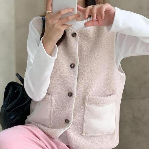 [다잇템_패션]여성 양털 내의 주머니 베스트 버튼 뽀글이