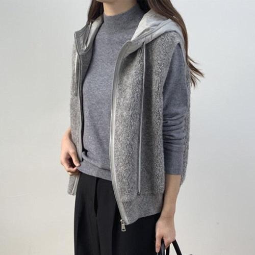 |CDJ67F9|여성용 후드 집업 뽀글이 니트 베스트 캐주얼 후리스