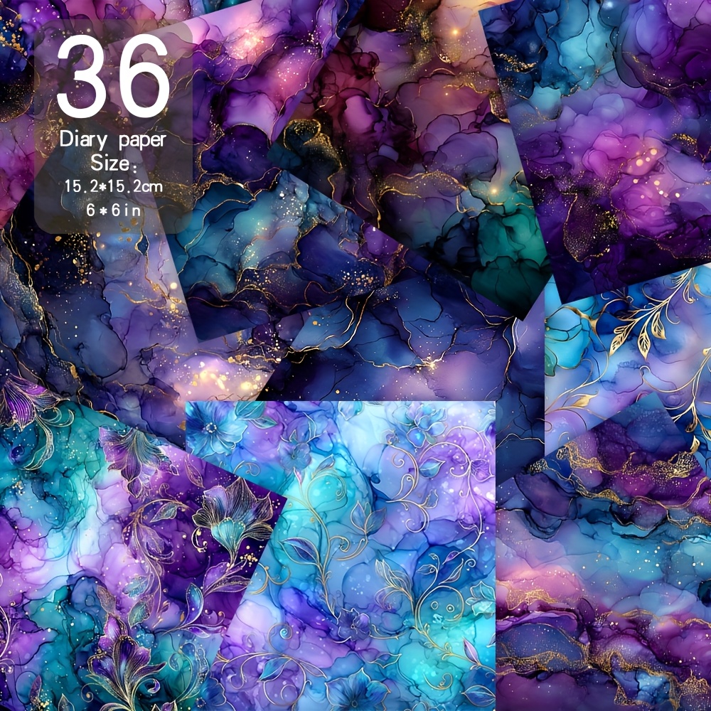 TEMU 36장 스크랩북 용지 - 우아한 보라색 꽃무늬, 6x6인치 정사각형 시트, 고급스러운 진청·보라·금색 디자인 12종 - 스크랩북, 카드 만들기, 저널링용 - 웨딩, 생일, 기념일 공예에 완벽한 스타일리시 플로럴 문구류, 아티스틱 패턴 필수품
