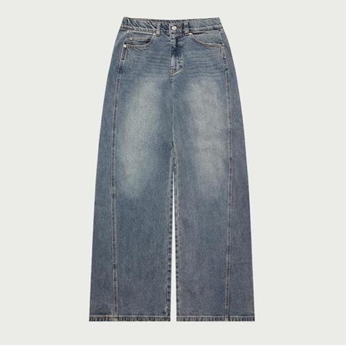 [다잇템][다잇템] 여자 사이드라인 중청 논스판 넓은 진팬츠 청바지_20121522_588872