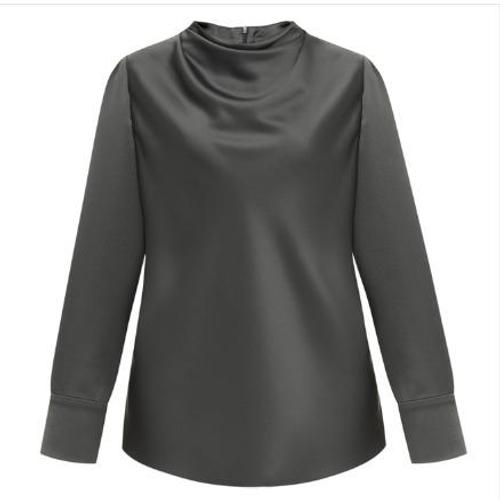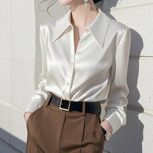 여성 새틴 셔츠 우아한 플레인 긴팔 블라우스 오피스룩 버튼업 셔츠 탑 여성 크루넥 셔츠 블라우스 2025 가을