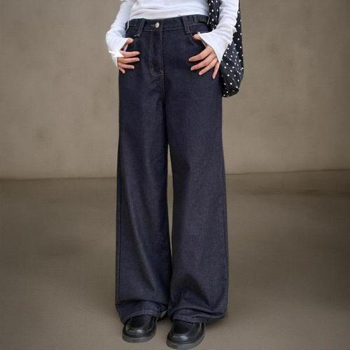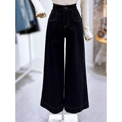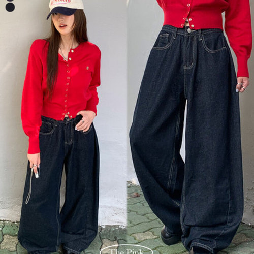 [신상오픈런]여성 캐주얼 생지 와이드 데님 사이드 버클 팬츠