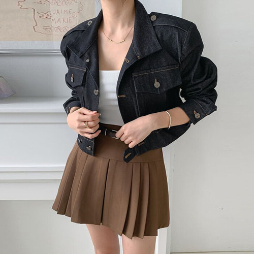 [자켓+스커트+팬츠set]헤르츠 생지 데님 미니스커트/크롭 청자켓/와이드 팬츠(2color)