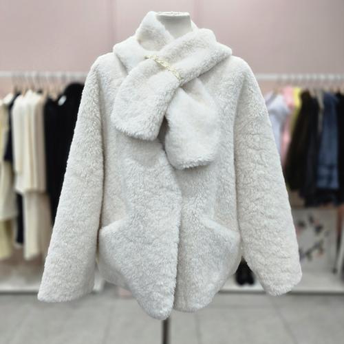 [샤틴]목도리셋 브이넥 퍼 쟈켓S254K161A03