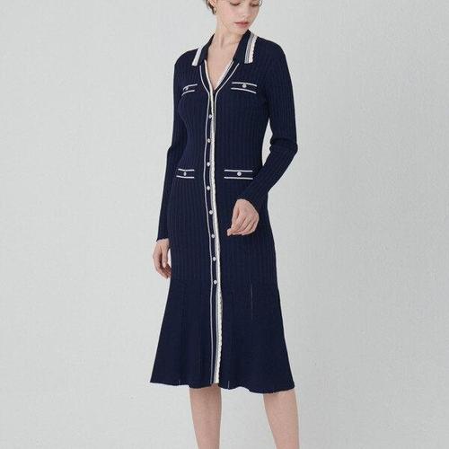 [샤틴]레이스배색 니트 롱 원피스S233B956A_JK