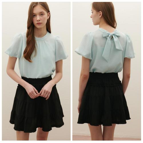 [샤틴]백 리본 퍼프소매 끈탑 블라우스S252B262A20_JK