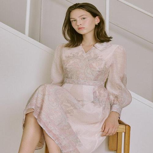 [샤틴]플라워 프린트 벨티드 원피스/S253B654
