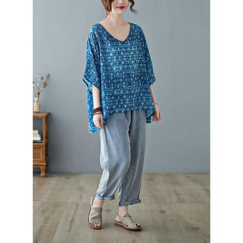 여성 여름 루즈핏 빅 브이넥 가오리 블라우스 셔츠