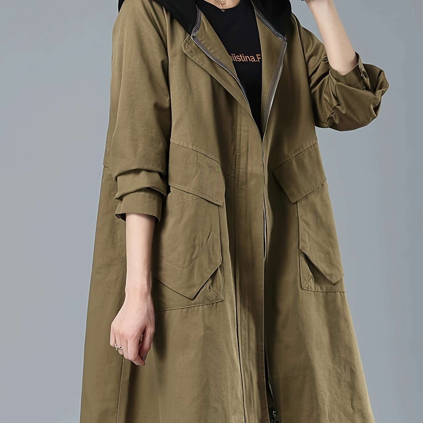 TEMU 플러스 사이즈, 여성용 루즈핏 미디엄 기장 캐주얼 패션 심플 후드 트렌치 코트